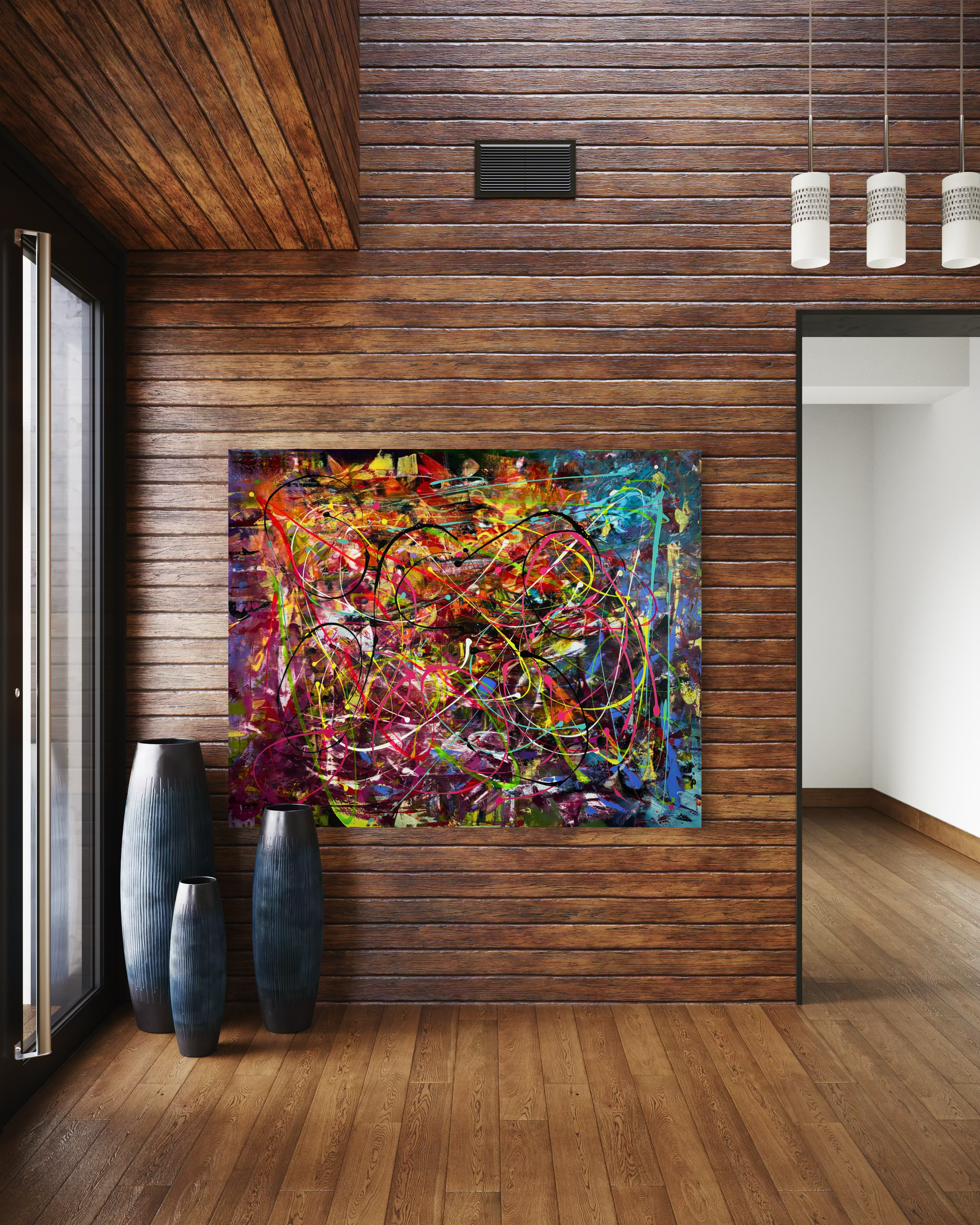 Platno je napeto na lesenem podokvirju, skupna teža izdelka je 4,8 kg.